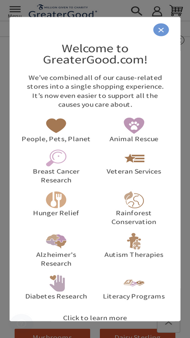 66%every purchase at greatergood®'s network of online store gives to charity. shop apparel, jewelry, gifts, home decor, footwear, accessories and more. we've given over $60 million to charity since 1999!