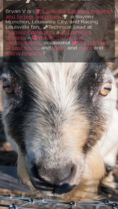 100%bryan volz is a front-end web designer/dev, a travel and music photographer, bayern münchen fan and more from louisville, ky, usa