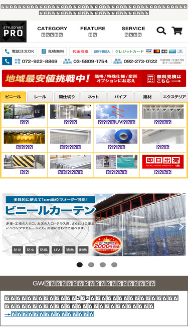 97%工場や現場で使用するビニールカーテンや大型カーテンレール、安全ネットを激安価格で。また農業に使用する防風・防鳥ネットや防球ネットなど業務用商材を幅広く取り扱い。