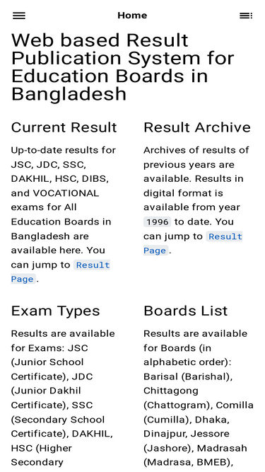 82%শিক্ষা বোর্ডের ফলাফল প্রকাশের ওয়েবসাইটে আপনাকে স্বাগতম # সর্বশেষ পোস্টসমূহ # এইচ এস সি / আলিম / ভোকেশনাল ২০২৪ ফলাফল প্রকাশ (১২ অক্টোবর, ২০২৪) এস এস সি / দাখিল / ভোকেশনাল ২০২৪ ফলাফল প্রকাশ (৮ মে, ২০২৪) এইচ এস সি / আলিম / ভোকেশনাল ২০২৩ ফলাফল প্রকাশ (২৬ নভেম্বর, ২০২৩) সর্বশেষ হালনাগাদকৃত ফলাফল # এখানে বাংলাদেশের সকল শিক্ষা বোর্ডের সকল পাবলিক পরীক্ষার সর্বশেষ হালনাগাদকৃত ফলাফল পাওয়া যায়। সরাসরি ফলাফল দেখতে ফলাফলের সেবাসমূহ পাতায় ভিজিট করুন।
