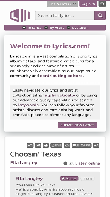 100%on lyrics.com you can find all the lyrics you need. from oldies to the latest top40 music. ©2025 stands4 llc