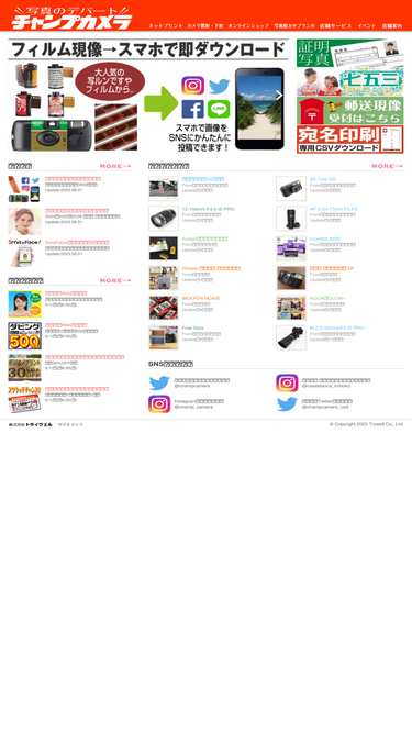 75%横浜市青葉区・都筑区の写真・カメラ専門店なら「チャンプカメラ」。デジカメプリント、証明写真、フォトブック、カメラ買取、レンズ買取、フィルム現像、写真館カサブランカでのスタジオ撮影(七五三・成人式)、各種ダビング、時計電池交換。写真のことなら何でもご相談ください!