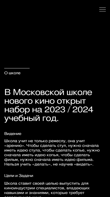 79%Московская школа нового кино ставит своей целью выпустить для киноиндустрии режиссеров, сценаристов, операторов, актеров, владеющих навыками и знаниями, которые требует современное кино.
