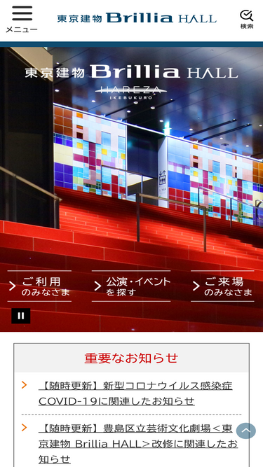 77%東京建物 Brillia HALL(豊島区立芸術文化劇場)は、区民に良質な芸術文化を鑑賞する機会を提供し、区民の福祉を増進するとともに、芸術文化が生み出す波及効果で地域のにぎわいを創出することを目的として設置された公共施設です。