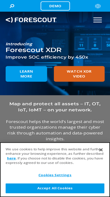 93%The only automated cybersecurity company that continuously identifies, protects and ensures the compliance of all managed and unmanaged connected assets – IT, IoT, IoMT and OT – so you can more effectively manage cyber risk and mitigate threats.