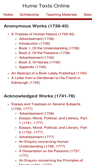 a permanent online resource for hume scholars and students, including reliable texts of almost everything written by david hume, and links to secondary material on the web.