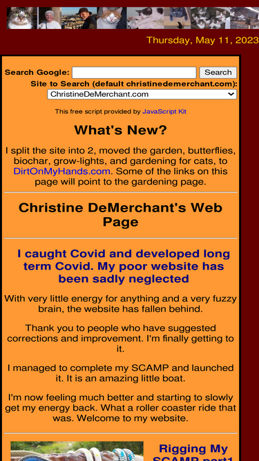 89%christine demerchant's eclectic mix of interests including boatbuilding, boats, and cats, making things, taking things apart.