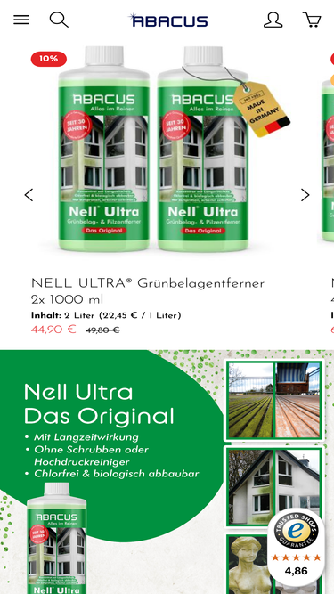73%✅ Profitieren Sie noch heute von unserem 10% Newsletter Rabatt! Reinigungsmittel in Industriequalität für Privatkunden - Seit 30 Jahren entwickelt, produziert und vertreibt ABACUS Reiniger und Pflegemittel für jeden Zweck!