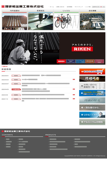 76%理研軽金属工業株式会社はアルミの特性を活かしたビル建築の内・外装建材をはじめ、環境をみつめた多彩なアルミ製品の製造・販売を行うアルミ総合メーカーです。