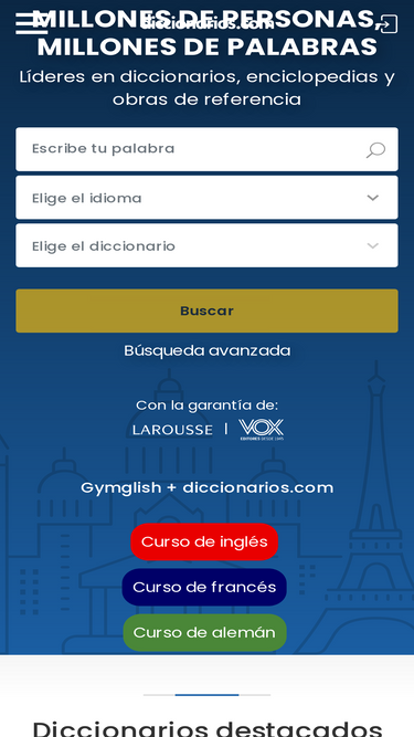100%diccionarios online con la garantía de larousse y vox: español, inglés, francés, alemán, italiano, catalán, gallego, sinónimos, conjugador verbal, ideológico, médico, enciclopedia, visual, euskera, francés. acceso gratis y premium.