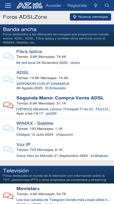 83%Entra en el Foro ADSLZone. Comunidad y foros de ADSLZone donde los usuarios plantean dudas y comparten opiniones relacionadas con la tecnología y telecomunicaciones. Te invitamos a que te unas a nuestros foros y participes Foros de ADSLZone Bienvenidos a la comunidad de ADSLZone.net. En nuestros...