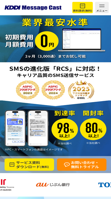 96%総合的なメッセージ配信を実現! ※2025年5月時点の対応キャリアはauのみ お問い合わせはこちら RCS の