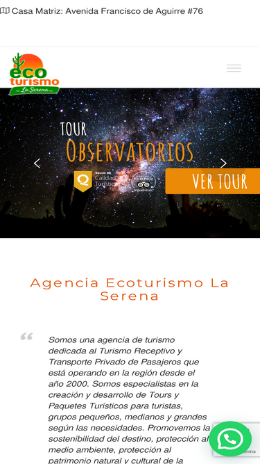 81%Há vàrios anos, nosso compromisso tem sido: 1 - Missão Atuar com excelência no serviço de agenciamento de viagens a negócios e lazer e na concepção e organização de eventos, garantindo a criação e geração de valor para clientes, equipe e sociedade promovendo a satisfação total de cliente e a sustentabilidade do negócio. 2 - Visão Ser a melhor empresa com maior eficiência no segmento do Turismo no deserto do Atacama, proporcionando experiências únicas e inesqueciveis.
