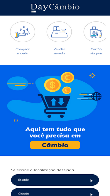 76%DayCâmbio Casa de Câmbio - Referência em Câmbio Turismo e Remessas no Brasil. Com mais de 80 casas de câmbio estrategicamente localizadas em todo o País, oferecemos as melhores cotações para taxas de câmbio, remessas internacionais, seguro viagem e envios rápidos com a DHL, UPS e FEDEX. Conte com nossa equipe especializada, atendimento VIP, entrega programada e assessoria a grupos de viajantes. Negocie conosco e tenha a melhor experiência em câmbio. Entre em contato agora mesmo!
