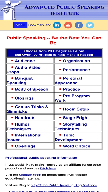97%an excellent resource for students who are preparing for a public speaking event. you will find sample speeches delivered by students as well as adults in various public speaking contests. the website also features public speaking tips, news and events, and lists of competition winners.