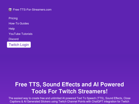 92%The easiest way to create free and unlimited AI powered Text To Speech (TTS), Sound Effects, Close Captions & AI Generated Stickers using Twitch Channel Points with ChatGPT integration for Twitch streamers!