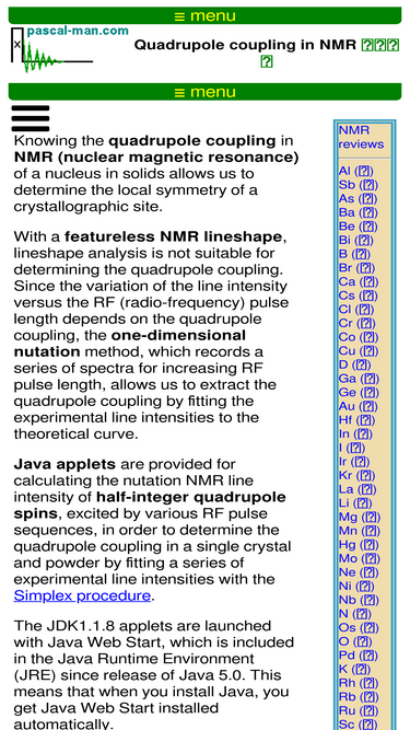100%java applets for calculating nutation nmr line intensities of half-integer quadrupole spins excited by pulse sequences