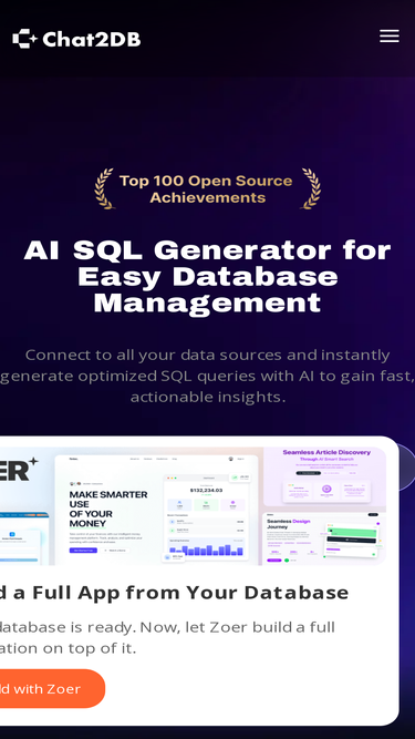 Chat2DB is an AI-powered SQL client that transforms natural language into SQL queries. Supports MySQL, Redis, MongoDB, and enhances database management with Text2SQL and BI features.