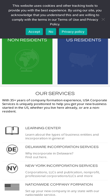 79%our services with 35+ years of company formation experience, usa corporate services is uniquely positioned to help you get your new business started in the us, whether you live here already, or are a non-resident.