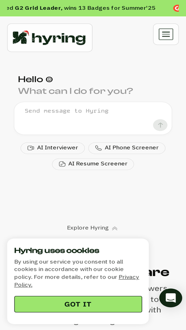 60%Streamline your hiring process with Hyring’s AI recruiting software. Find top talent faster using our smart AI interviewer. Get started today!