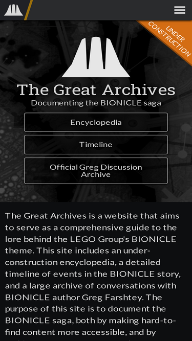 85%Development blog for the Great Archives, a website dedicated to documenting the BIONICLE saga.