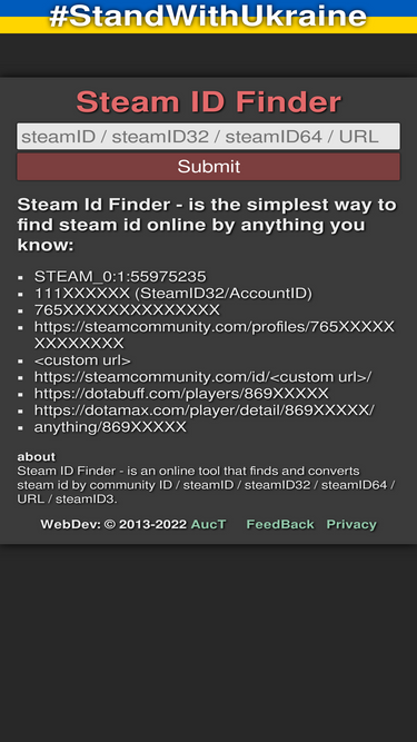 88%Steam ID Finder - is an online tool that finds and converts steam id by community ID / steamID / steamID32 / steamID64 / URL / steamID3