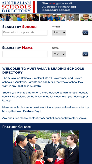 83%australian schools directory is the only online guide to all australian schools including melbourne schools, sydney schools, adelaide schools, perth schools,canberra schools, darwin schools, hobart schools and brisbane schools.