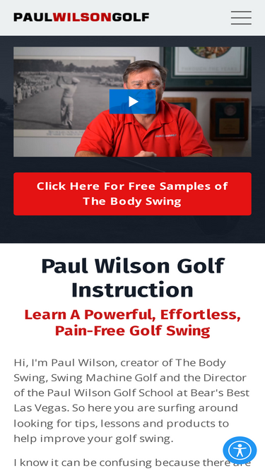 98%Paul Wilson's golf instruction, lessons, schools and tips teach a powerful, effortless, pain-free golf swing to golfers of all ages, genders and abilities.
