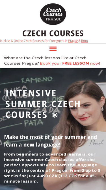 95%You know a few words, phrases and how to order a beer but you want to really start to learn Czech? This course will give you a great start with your Czech! You will learn how to communicate on a daily basis in the shop, cafe or on the street. You will get an idea about the Czech system of verbs in the present tense, about genders of nouns, colours, basic phrases and structure of a Czech sentence. Prices for 1 lesson in the pack of 10 lessons: