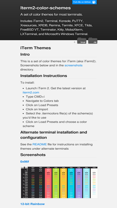 87%iterm2-color-schemes : a set of iterm 2 color schemes/themes. some schemes have been ported from mac osx's terminal application