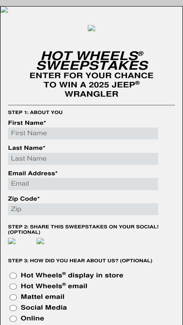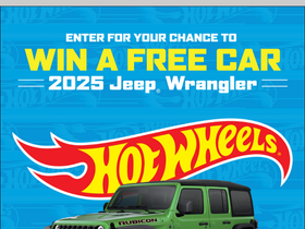 74%Hot Wheels SweepstakesS™. Enter for your chance to win a 2025 Jeep® Wrangler. No purchase necessary. Ends 11:59 pm PT on 10/5/25.