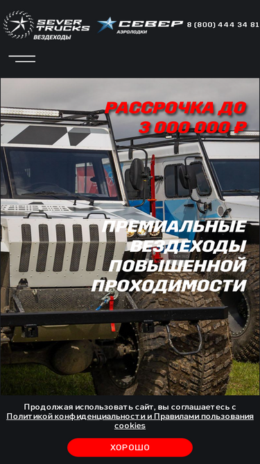 87%Официальный сайт SeverTrucks — ведущий производитель вездеходов для экстремальных условий и профессиональных задач. Узнайте о наших моделях и закажите надежную технику с гарантией качества.