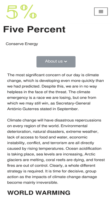 79%five percent conserve energy about us the most significant concern of our day is climate change, which is developing even more quickly than we had predicted. despite this, we are in no way helpless in the face of the threat. the climate emergency is a race we are losing, but one from which we may