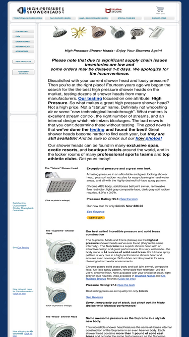 98%high pressure shower heads, rain shower heads and hand-held shower heads, in chrome, brushed nickel, polished brass and oil rubbed bronze. shower arms, diverters, flow valves and more.