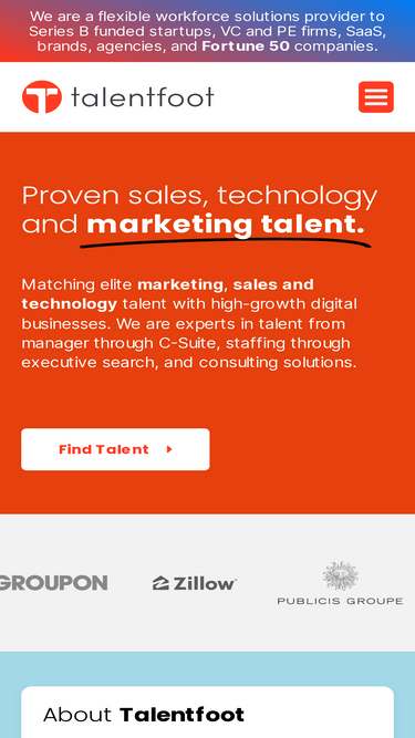 79%Talentfoot is a boutique recruiting firm specializing in digital marketing, sales and technology recruitment with expertise in digital.