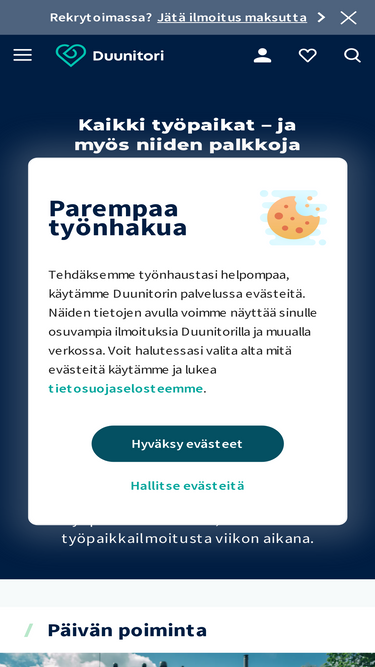 82%Duunitori on Suomen suurin työnhakukone ja uudenaikainen rekrytointimedia. Eniten avoimia työpaikkoja yhdellä haulla! Yli 30 000 työpaikkaa odottaa hakemustasi.
