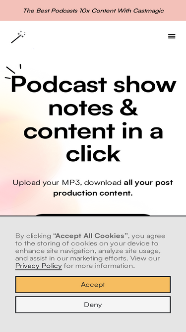 100%Transformez instantanément l'audio en contenu prêt à l'emploi. 10 fois votre contenu. Téléchargez votre MP3, téléchargez des notes de présentation, des résumés, des faits saillants, des citations, des publications sociales, etc.