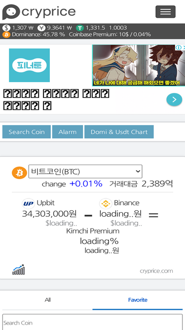94%전세계 모든 암호화폐 가격비교 크라이프라이스(cryprice)