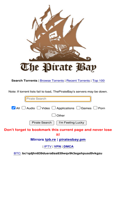 90%download music, movies, games, software and much more. the pirate bay is the galaxy's most resilient bittorrent site.