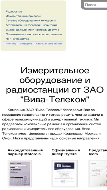 81%зао вива-телеком осуществляет продажу радиостанций и измерительных приборов с доставкой во все регионы россии. вива-телеком имеет филиалы в городах краснодар, омск, москва.