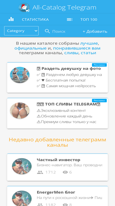 87%Топ самых популярных Telegram каналов представлены на нашем сайте. • Добавить телеграм канал. Телеграм каналы. История. В каталоге каналов all-catalog.ru собраны лучшие телеграм-каналы России, Украины, Казахстана, Узбекистана.