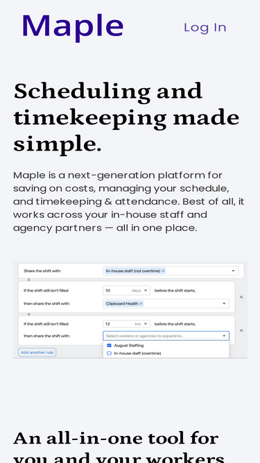 Maple is a next-generation platform for saving on costs, managing your schedule, and timekeeping & attendance.