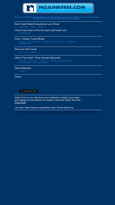 89%no junk free stuff finds and lists the best and coolest samples online. the concept of filtering out all of the junky free stuff originated at this website.