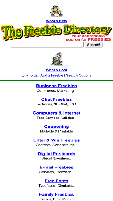 97%ez freebies has free stuff in hundreds of categories. find free games, free screensavers, free internet service, free email, free downloads, free mp3 files, free clipart, free fonts, free greeting cards, free movies, and tons more!