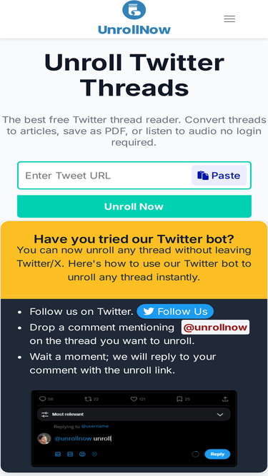 100%Read, unroll and convert Twitter/X.com threads to PDF online without an account. Free thread reader tool.