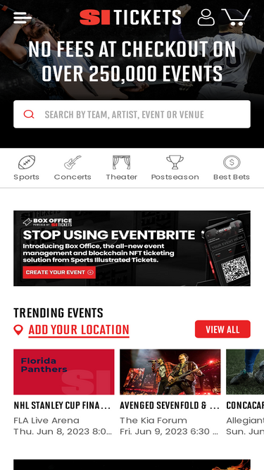 89%si tickets by sports illustrated is an online ticket marketplace where fans can buy and sell tickets to sports, concerts, and theater events nationwide with no fees at checkout.