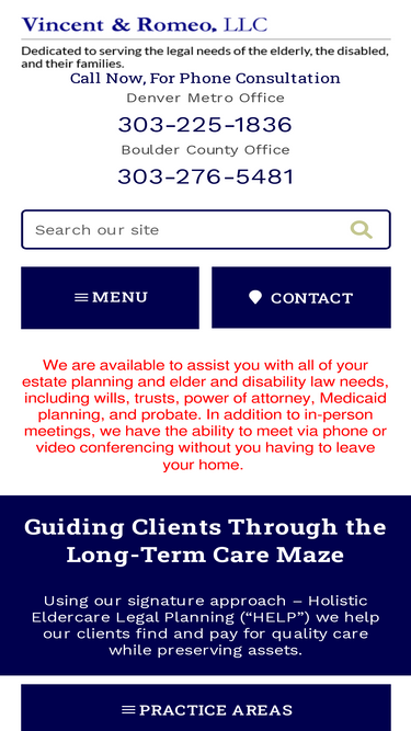 76%Schedule a consultation concerning elder care planning with the law firm of Vincent, Romeo & Rodriguez, LLC, in Colorado: 303-720-7260 or 303-500-5859.