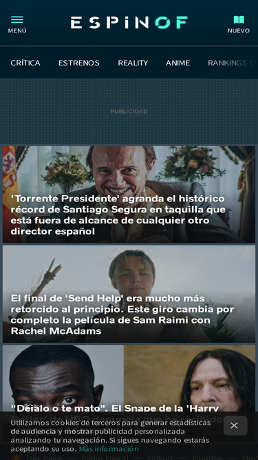 97%espinof, últimas noticias de cine, televisión y series: actualidad cinematográfica, estrenos en cartelera, premios, rodajes, nuevas películas y audiencias.