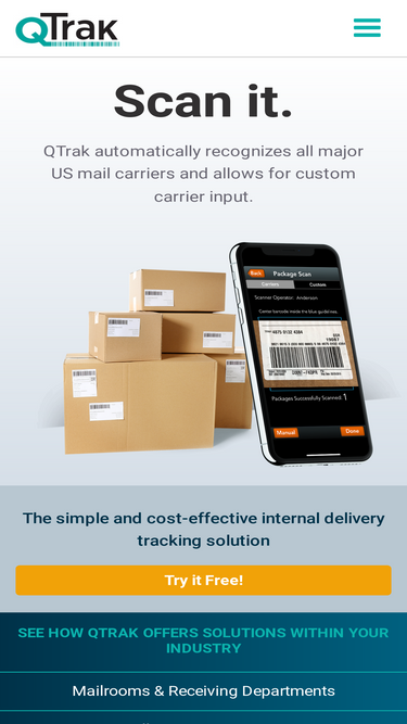 87%College mailroom solution from QTrak featuring recipient notification, high density mail with variable assignment mailboxes, and signature capture and ID scan.