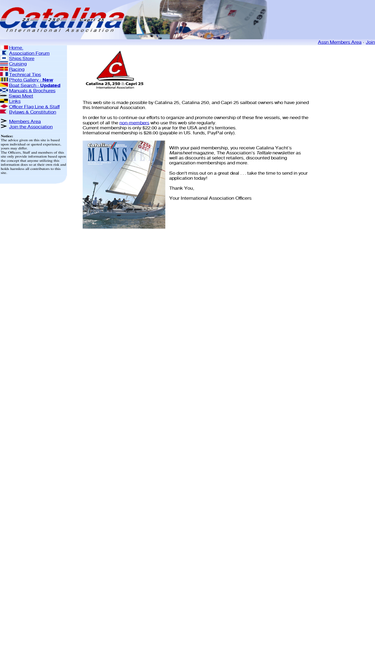 catalina 25, catalina 250, and capri international association, membership and information about the sailboat. this web site is made possible by catalina 25, catalina 250, and capri 25 sailboat owners who have joined this international association.
